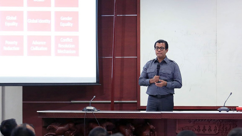 Gubernur Lembaga Ketahanan Nasional Republik Indonesia (Lemhannas RI) Andi Widjajanto memberikan ceramah hubungan internasional dan geopolitik kepada Peserta Program Reguler Angkatan (PPRA) 65 bertempat di Ruang NKRI, Gedung Pancagatra, pada Selasa (18/4).