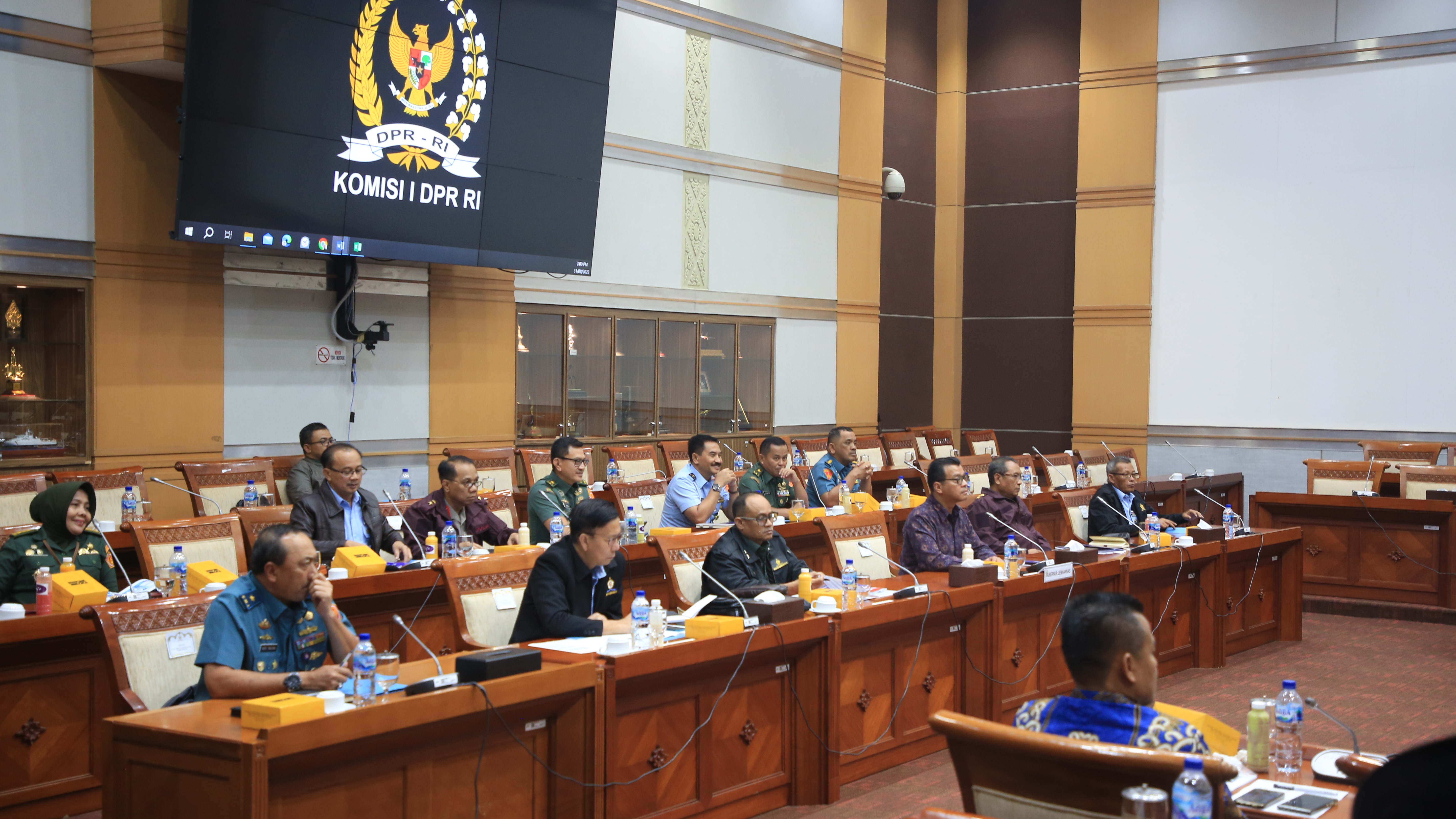 Gubernur Lemhannas RI Andi Widjajanto didampingi sejumlah pejabat Lemhannas RI menghadiri Rapat Dengar Pendapat (RDP) Lemhannas RI dengan Komisi I DPR RI, pada Kamis (31/8), di Komplek Gedung DPR RI.