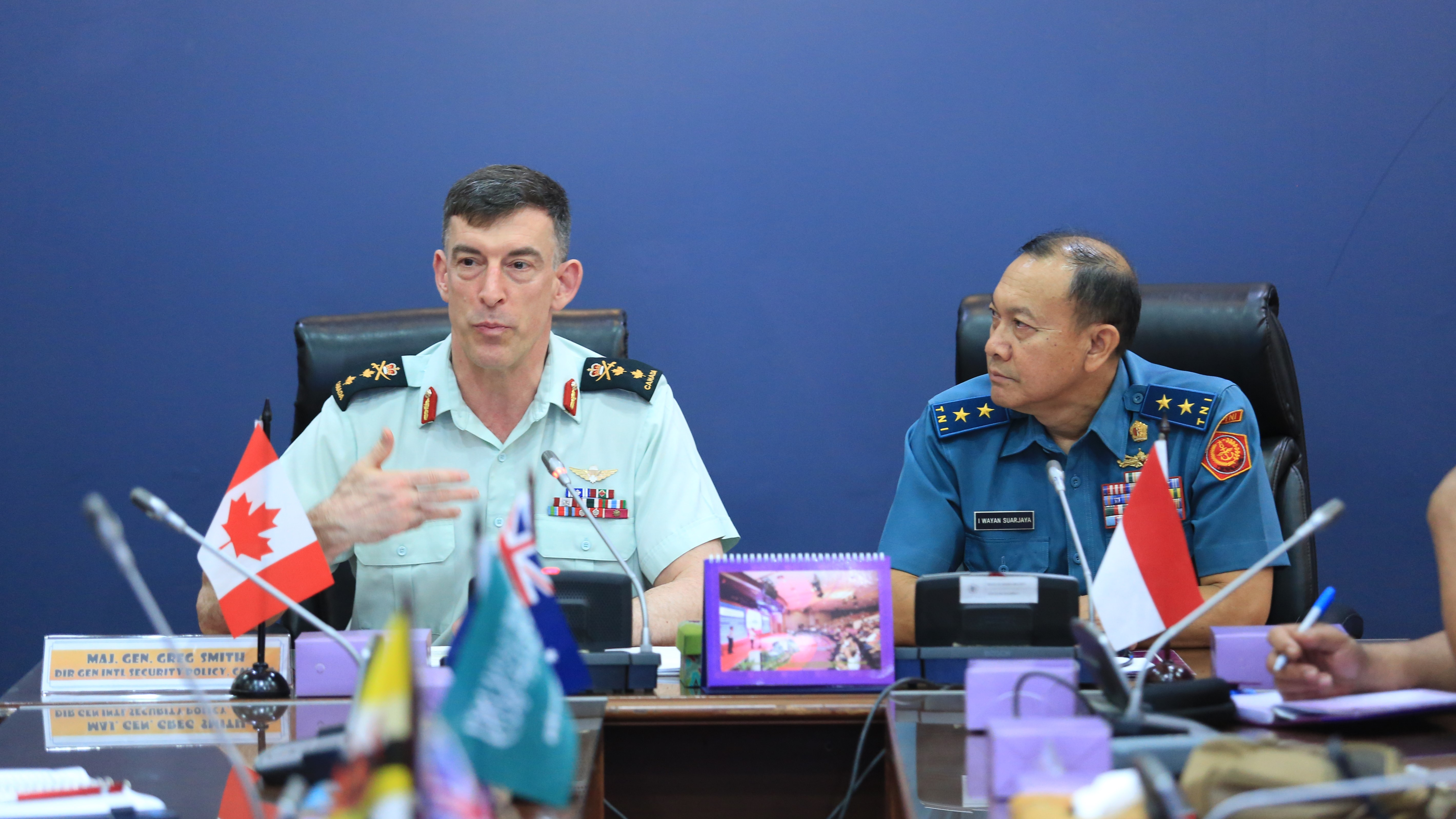 Direktur Jenderal Kebijakan Keamanan Internasional, Departemen Pertahanan Nasional Kanada, Mayor Jenderal Greg Smith melakukan kunjungan kerja ke Lemhannas RI pada Selasa (23/4) dan diterima oleh Tenaga Ahli Pengkaji Bidang Demografi Lemhannas RI Laksda TNI I Wayan Suarjaya, S.Sos., M.Tr.(Han) yang mewakili Wakil Gubernur Lemhannas RI.