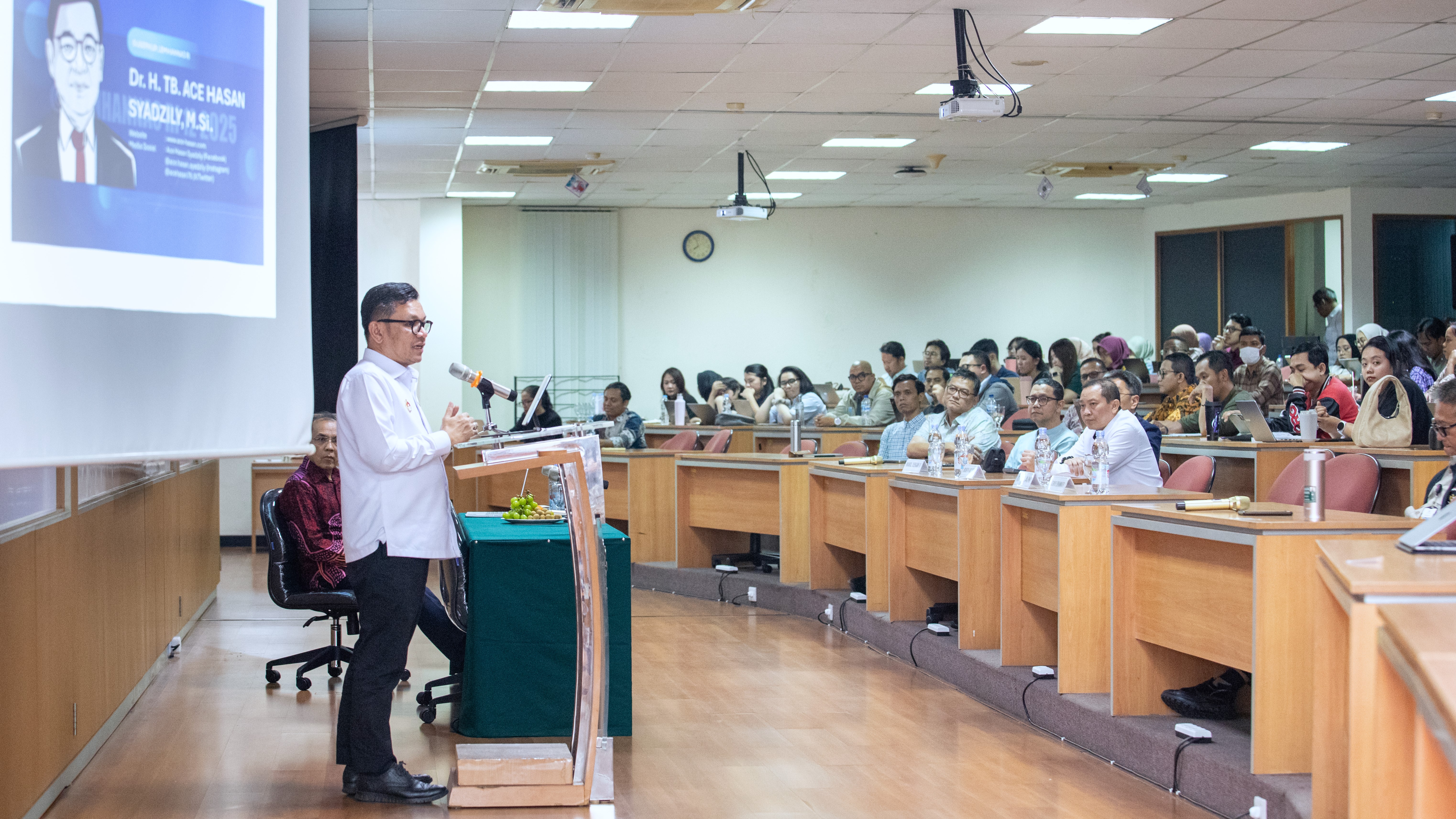 Gubernur Lemhannas RI Dr. H. TB. Ace Hasan Syadzily, M.Si. menjadi pembicara pada kegiatan kuliah umum yang bertema Authentic Leadership di Auditorium Magister Akuntansi-Pendidikan Profesi Akuntan (MAKSI-PPAk.) Fakultas Ekonomi dan Bisnis Universitas Indonesia pada Kamis (4/12). Kegiatan tersebut bertujuan untuk memperluas wawasan akademik serta memperkaya pengalaman pembelajaran mahasiswa MAKSI-PPAk.